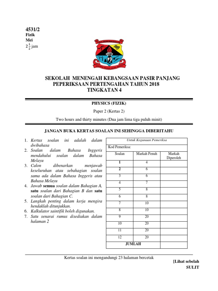 Fizik Tingkatan 4 Kertas 2 2018 Pdf